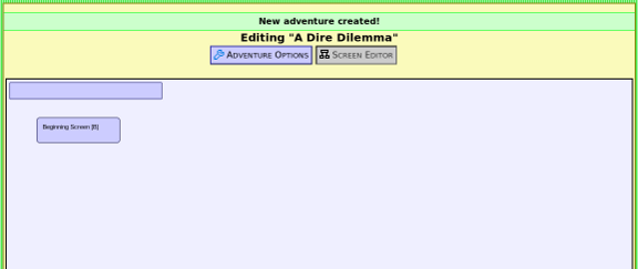 Now it's time to move to the Screen Editor. There's a handy button above the Adventure Options to take us there, so click on that.