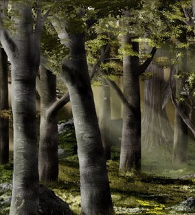 You decide to take the path to the left. As you enter the grove the light breaks through the trees in a beautiful light display.